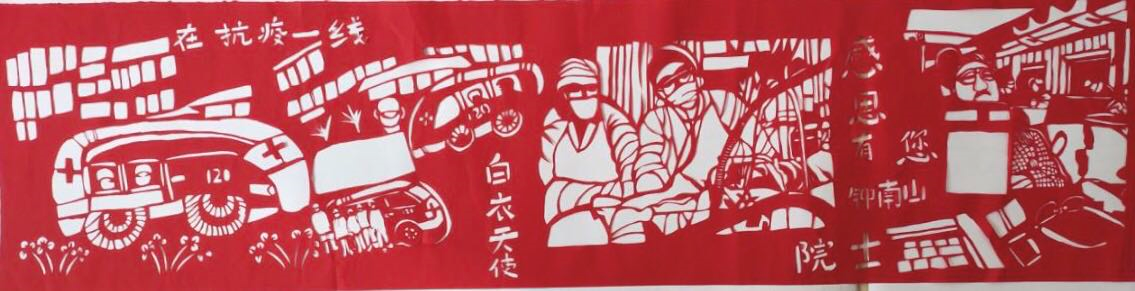 中國甘肅網(wǎng)2月24日訊  近日,西固區(qū)文化館收到了一份“特殊”的作品,來自蘭州市級(jí)非遺項(xiàng)目傳承人張旭老師。張旭在抗疫期間特別創(chuàng)作了《眾志成城》《感恩有你》《逆行者》等剪紙長(zhǎng)卷作品,所有作品全長(zhǎng)10余米。