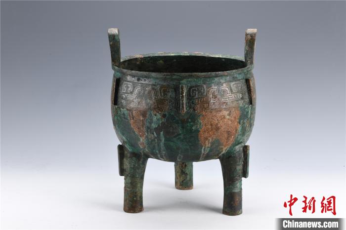 同時(shí),酒務(wù)頭墓地大墓的形制、青銅禮器組合和器型紋飾風(fēng)格等表現(xiàn)出其與商文化演進(jìn)過程的同一性與復(fù)雜性。墓地不僅出土了成套系的樂器,如鼓、鈴、鐃等,還出土了種類豐富、造型各異的青銅鼎,其中不乏一些形體較大的重器,凸顯其禮器功能。其中,子匿圓鼎表面飾獸面紋、雷紋,足根部飾獸面、凸弦紋,鼎內(nèi)壁鑄有“子匿”銘文,應(yīng)為族徽或人名。這種深腹、圜底、三足鼎的形制以及紋飾是商代晚期青銅鼎的典型樣式。