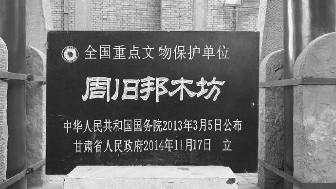 匾額題寫好之后,“周舊邦”三個(gè)楷書(shū)大字懸掛于慶陽(yáng)縣城的木坊之上,留存至今。