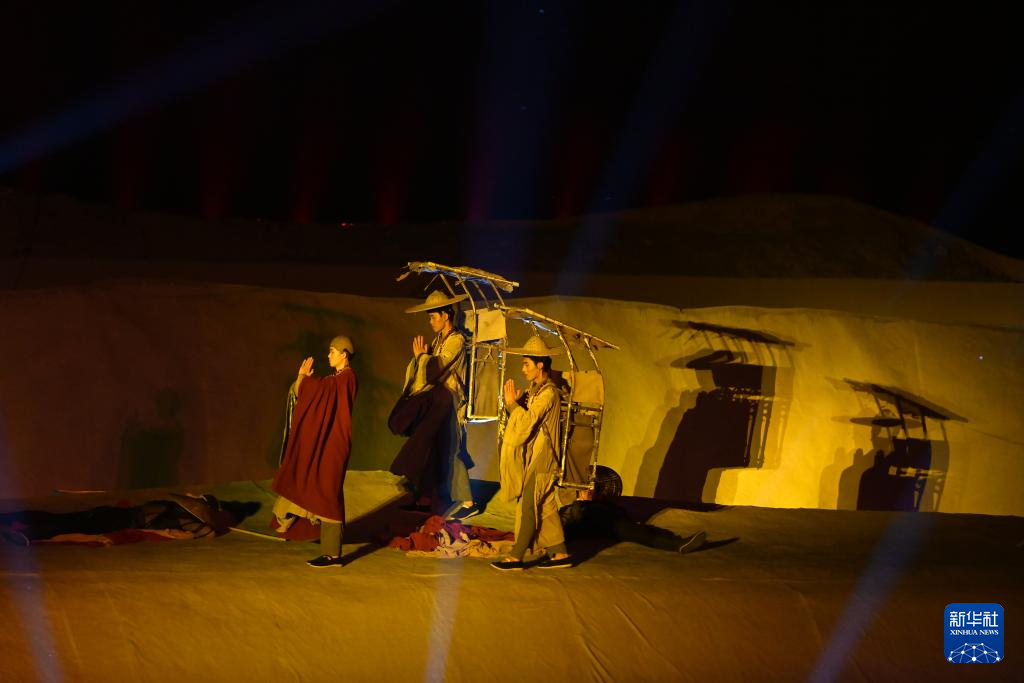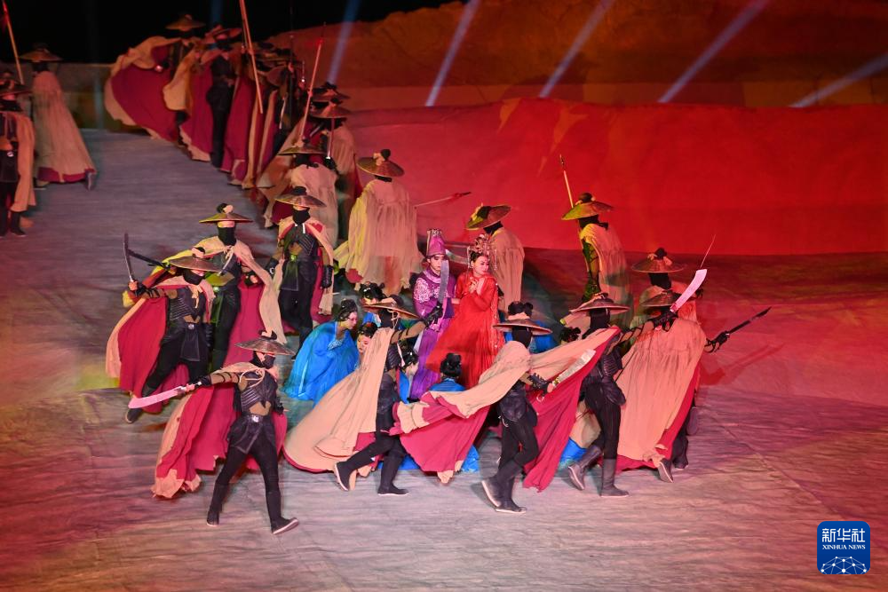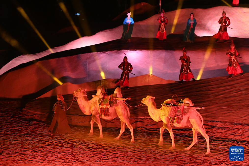 今年以來,脫胎于敦煌文化的洞窟沉浸式體驗劇《樂動敦煌》、室內(nèi)情景體驗劇《又見敦煌》、沙漠實景演出《敦煌盛典》和中國殘疾人藝術(shù)團(tuán)情景音畫劇《千手千眼》四場劇目在絲路名城甘肅敦煌同步上演,劇目將敦煌歷史底蘊、服飾文化、樂舞文化等生動融合,為游客呈現(xiàn)出精彩絕倫的敦煌文化視覺盛宴,深受中外游客喜愛。截至8月10日,四大劇目今年已累計演出1175場次,觀看游客突破66萬人次。其中,《敦煌盛典》以敦煌鳴沙山月牙泉為背景,將沙漠景觀與現(xiàn)代舞美結(jié)合,將墻體燈光融入實景演出,講述了一段發(fā)生在古絲綢之路重鎮(zhèn)敦煌的愛情故事,展示了敦煌的歷史文化及人文風(fēng)貌。