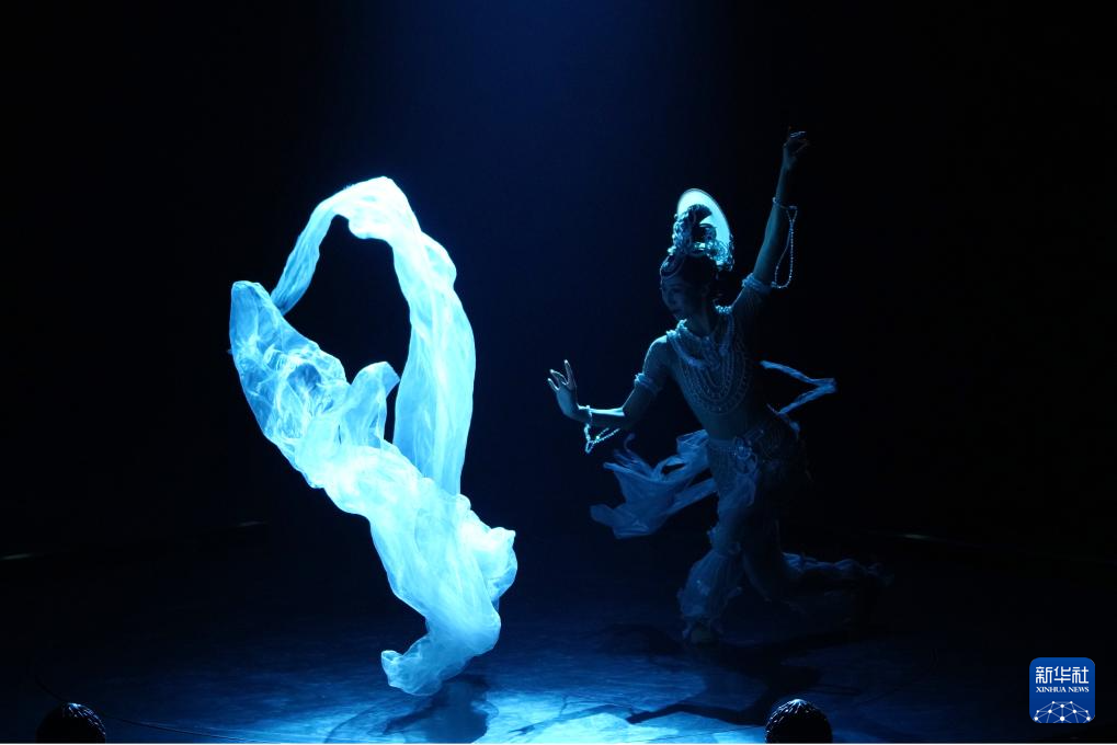 8月9日,演員在《樂動敦煌》中表演。新華社記者 馬寧 攝