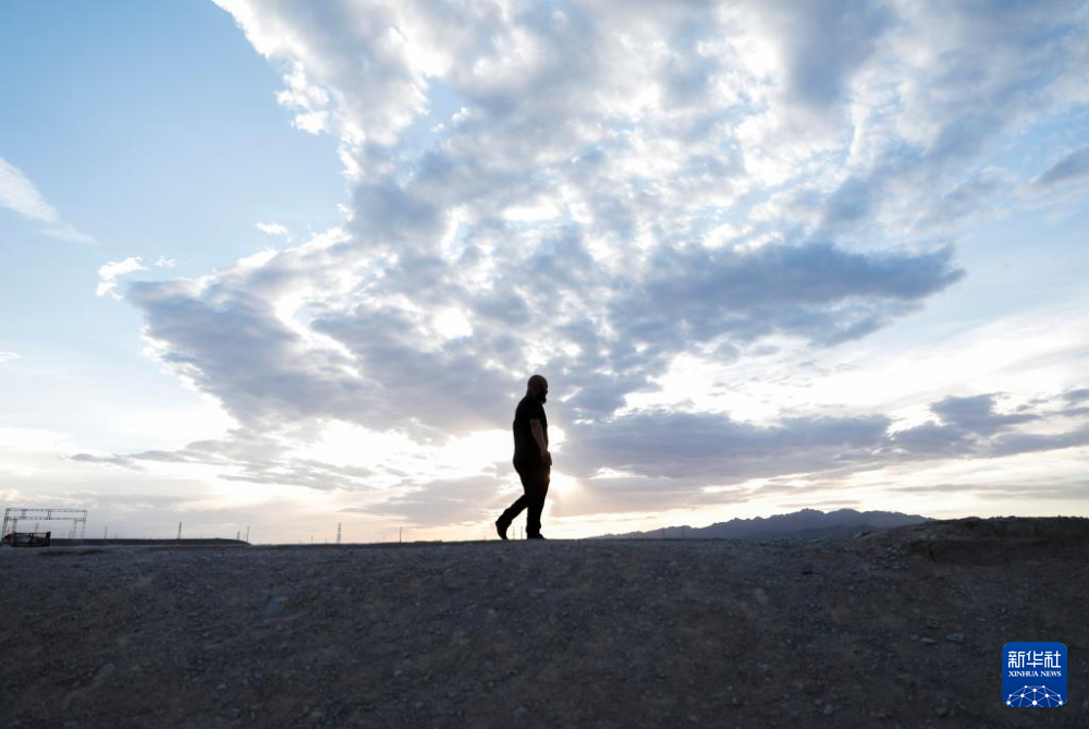 7月13日,李森結(jié)束一天的工作離開甘肅嘉峪關關城景區(qū)。新華社記者 方欣 攝
