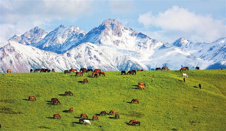 祁連山下的山丹馬場。甘肅省持續(xù)加強祁連山全域保護和系統(tǒng)修復(fù),依托現(xiàn)代科技建設(shè)“智慧祁連”,形成“天地空”一體化監(jiān)測網(wǎng)絡(luò),生態(tài)治理走上正規(guī)化信息化軌道。王 超攝(中經(jīng)視覺)