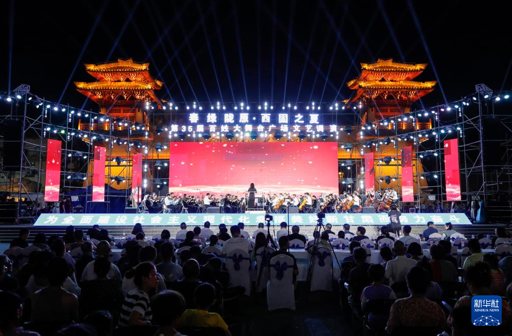7月31日,觀眾在觀看第三十五屆“春綠隴原·西固之夏”百姓大舞臺廣場文藝調演。新華社記者 方欣 攝