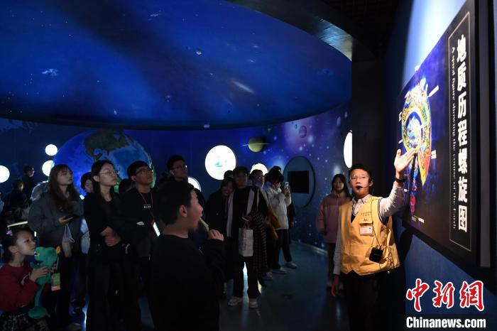 11月16日,正值周末,14歲的少年講解員侯澤磊在甘肅省博物館古生物化石展廳為游客講解。近年來,“文博熱”興起,甘肅省博物館積極培養(yǎng)少年講解員,成為文化傳承的新力量。據(jù)了解,自2012年起,該館已累計培養(yǎng)2000多名小講解員,他們通過富有創(chuàng)意的講解方式,為游客帶來多元的文化體驗。甘肅省博物館將繼續(xù)探索開放與富有創(chuàng)造力的博物館課程,為孩子們提供更多實踐機會。中新社記者 九美旦增 攝