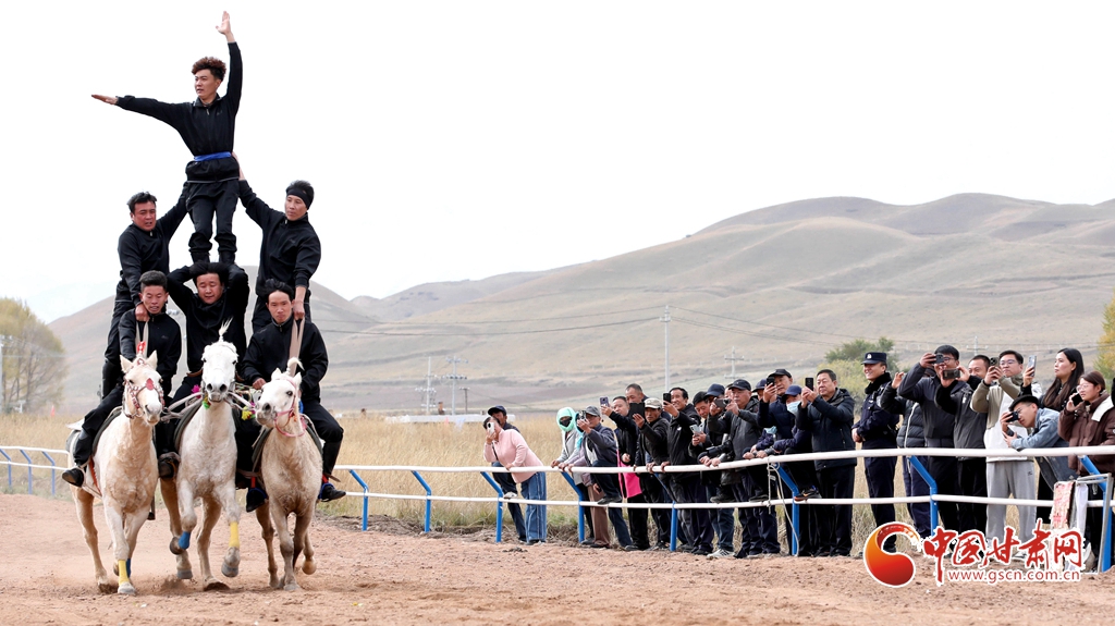 10月14日,山丹縣的一場賽馬會上,騎手們正策馬揚(yáng)鞭,為游客展示多項(xiàng)馬術(shù)項(xiàng)目。山丹縣毗鄰祁連山自然保護(hù)區(qū)和山丹軍馬場,坐擁優(yōu)質(zhì)草場資源,養(yǎng)馬歷史逾兩千年,馬文化底蘊(yùn)深厚,產(chǎn)業(yè)基礎(chǔ)扎實(shí)。近年來,當(dāng)?shù)貒@馬文化主題,建設(shè)了賽馬場、觀光馬道、育馬基地等設(shè)施,致力于為游客與馬術(shù)愛好者打造一個(gè)獨(dú)具特色的馬文化體驗(yàn)地。