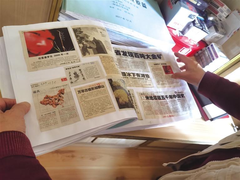 翻閱收藏的報紙剪報