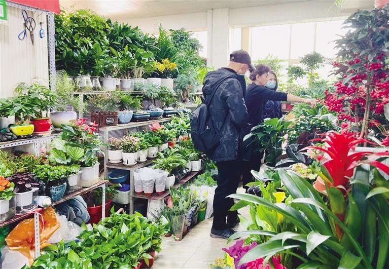 花卉帶給人們美的愉悅和享受,用花卉為溫馨的家增添色彩,也用花卉扮靚心情,迎接即將到來的春節(jié)。店主劉女士和愛人正在打理花店,她說,花卉作為室內(nèi)軟裝的一部分,現(xiàn)在已走進大眾家庭。以前老人養(yǎng)花,喜歡郁郁蔥蔥,綠得一大片的那種,現(xiàn)在年輕群體買花則更加注重花卉的形態(tài)美、意境美,大家的審美層次在提高,對花卉的精神需求也在提高。