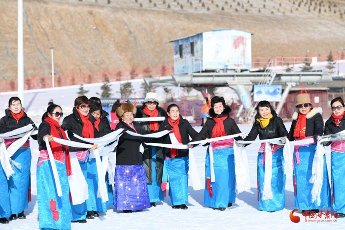 銀裝素裹的“冰雪嘉年華”現(xiàn)場(chǎng),來(lái)自當(dāng)?shù)氐母刹咳罕娚碇?jié)日的盛裝和游客們一起,隨著音樂(lè)的旋律,跳起了鍋莊。游玩區(qū),大人小孩參與其間,體驗(yàn)雙板滑雪、雪圈、雪地自行車等多種娛樂(lè)項(xiàng)目,歡聲笑語(yǔ)彌漫著整個(gè)雪場(chǎng)。