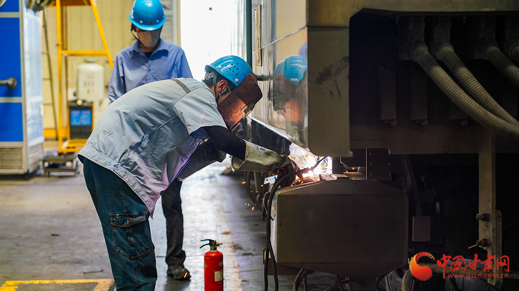 身穿長袖工作服、腳蹬勞保鞋、頭戴藍(lán)色安全帽,手上戴著電焊專用防護手套……蘭州鐵路局蘭州西機務(wù)段西整備車間電焊班組內(nèi),鐵路“焊將”劉偉偉在火花四濺、煙霧彌漫的工作臺位間來回穿梭,一點一點對機車車鉤鉤尾墊進行焊修。