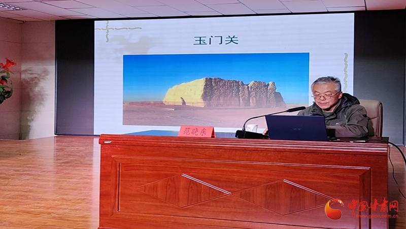 酒泉市肅州區(qū)博物館范曉東研究員以《何以酒泉-文物中的酒泉故事》為題,立足肅州區(qū)文博歷史,向與會師生介紹了古代絲綢之路、河西走廊歷史文化變遷、重要考古發(fā)現(xiàn)等,鼓勵同學(xué)們努力學(xué)習(xí),深入了解中華優(yōu)秀傳統(tǒng)文化,堅定文化自信,將來為建設(shè)家鄉(xiāng)貢獻力量。