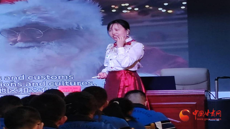 慶祝民族節(jié)日是民族文化的集中展示,也是民族情感的集中表達。肅州中學(xué)英語組的向昱老師以“地球村”引入主題,鼓勵同學(xué)們用英語講述關(guān)于中國春節(jié)的民間故事,了解世界各國不同文化背景下對節(jié)日的慶祝方式,引導(dǎo)大家在文化交流中尊重差異、理解個性,共同促進文化的多樣性。